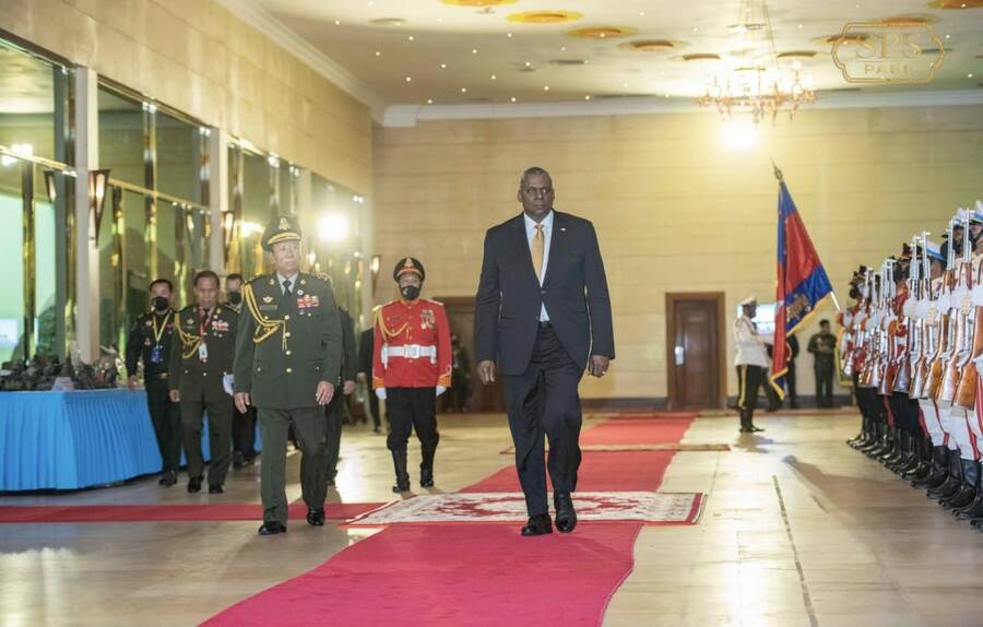 بنوم بنه - ٢٣ تشرين الثاني/نوفمبر ٢٠٢٢، وكالة الأنباء الكمبودية، ناقشت مملكة كمبوديا والولايات المتحدة الأمريكية تعاونهما في مجال الدفاع والأمن الوطنيين. جرت المناقشة بين سامديتش بيتشي سينا تي بانه، نائب رئيس وزراء كمبوديا ووزير الدفاع ومعالي لويد جيه أوستن الثالث وزير الدفاع الأمريكي في محافظة سيام ريب، أمس، على هامش الاجتماع التاسع لوزراء د...