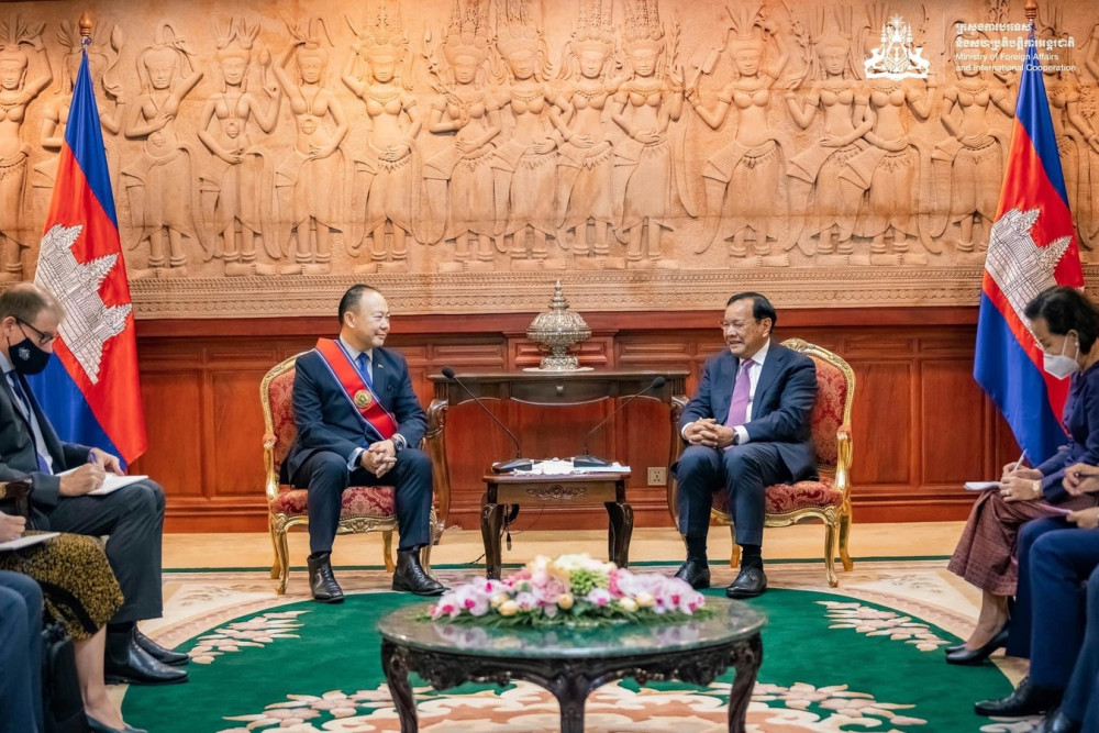 التقى معالي براك سوخون نائب رئيس الوزراء وزير الخارجية والتعاون الدولي في كمبوديا، اليوم الأربعاء بمقر الوزارة، سعادة بابلو كانغ، السفير الأسترالي المنتهية ولايته لدى كمبوديا في زيارة وداعية.