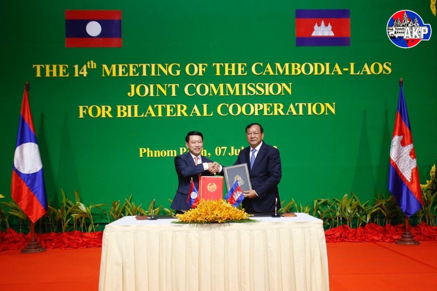 وقع معالي براك سوخون، نائب رئيس الوزراء ووزير الخارجية والتعاون الدولي في كمبوديا ومعالي سالومكساي كوماسيث، نائب رئيس الوزراء ووزير خارجية جمهورية لاوس الديمقراطية الشعبية المحضر المتفق عليه للاجتماع الرابع عشر للجنة المشتركة بين كمبوديا ولاوس للتعاون الثنائي. وذلك في عاصمة بنوم بنه، مساء (أمس) ٠٧ تموز/يوليه ٢٠٢٢.