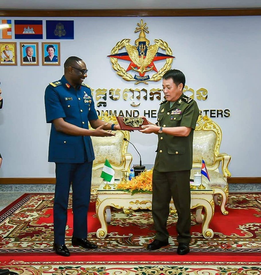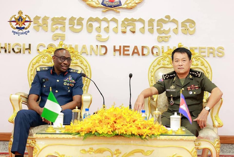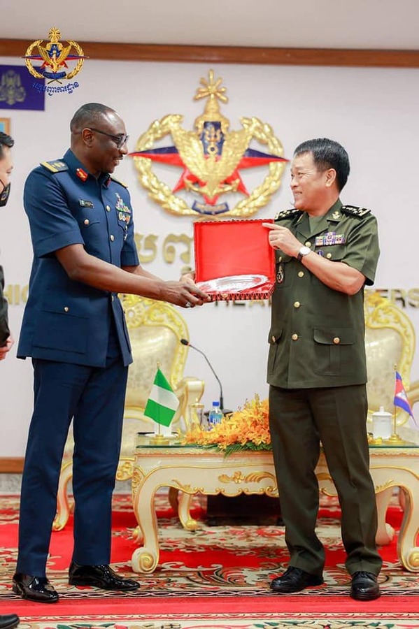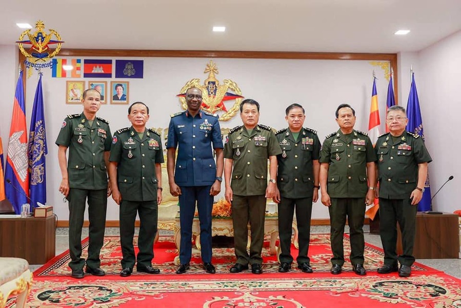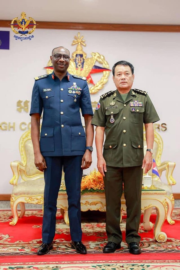 استقبل معالي الجنرال فونغ بسين، القائد العام للقوات المسلحة الملكية الكمبودية سعادة اللواء إيجودامي، مستشار عسكري في نيجيريا لدى كمبوديا والذي يقيم في كولالمبور، ماليزيا. وجرى خلال استقبال بحث عدد من الموضوعات والقضايا ذات الاهتمام المشترك. وذلك في مقر القائدة العامة للقوات المسلحة الملكية الكمبودية اليوم ٢٥ تموز/يوليو ٢٠٢٢.