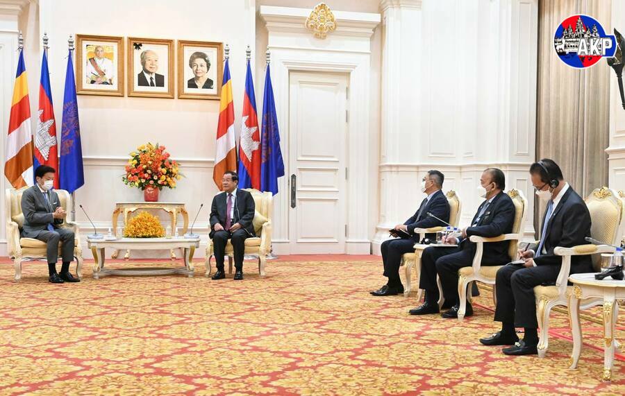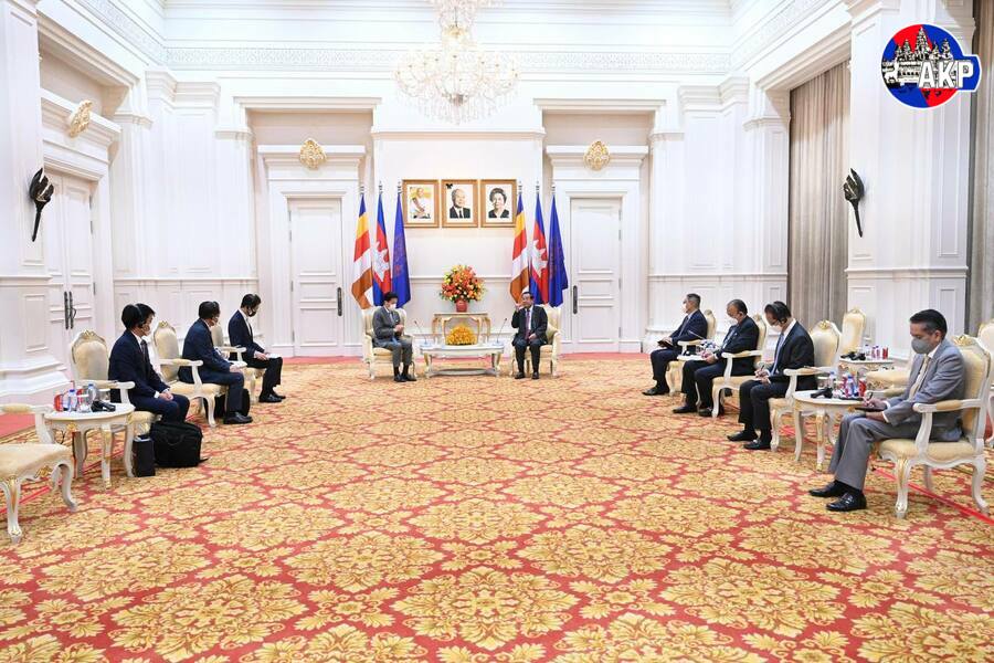 استقبل سامديتش أكا موها سينا بادي تيتشو هون سين، رئيس وزراء مملكة كمبوديا السيد يوشيشيشا كاينو، مدير تنفيذي لشركة مينبيا ميتسوم. وجرى خلال استقبال مباحثات العمل. وذلك في قصر السلام بعاصمة بنوم بنه هذا الصباح اليوم ٢٦ تموز/يوليو ٢٠٢٢.