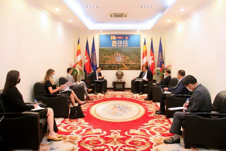تم هذا تسليط الضوء خلال اجتماع بين معالي بان سوراساك، وزير التجارة وسعادة بابلو كانغ، سفير أستراليا في كمبوديا بمقر الوزارة في عاصمة بنوم بنه في ٢٦ تموز/يوليو ٢٠٢٢.