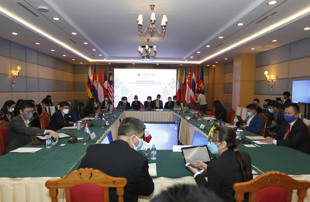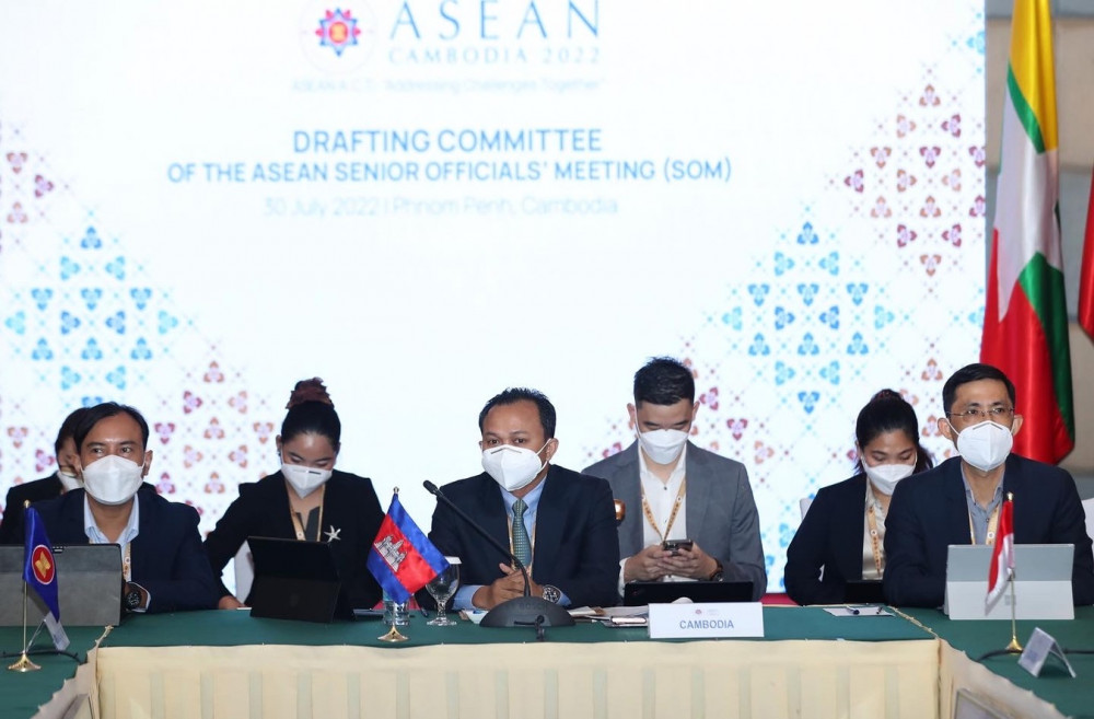 يقود سعادة سيم فيراك، المدير العام للإدارة العامة لوزارة الخارجية والتعاون الدولي اجتماع لجنة الصياغة لاجتماع كبار مسؤولي الآسيان. وذلك في فندق سوخا بعاصمة بنوم بنه هذا الصباح اليوم ٣٠ تموز/يوليو ٢٠٢٢.