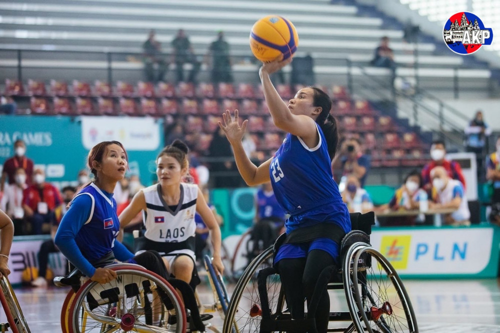 فاز فريق كرة السلة الكمبودي على الكراسي المتحركة للسيدات على نظيره اللاوسي ١١-٥ في حدث ٣ x ٣ من دورة ألعاب آسيان بارا الحادية عشرة في سولو بإندونيسيا هذا الصباح.