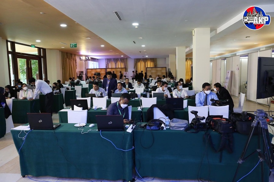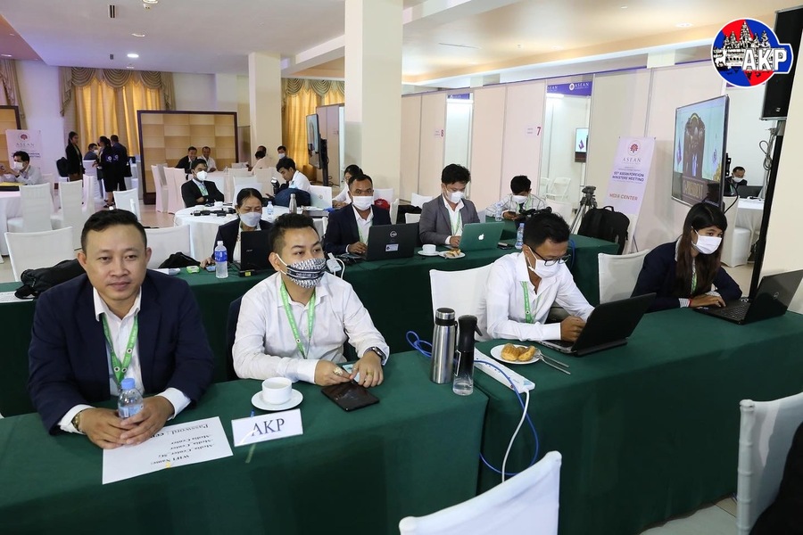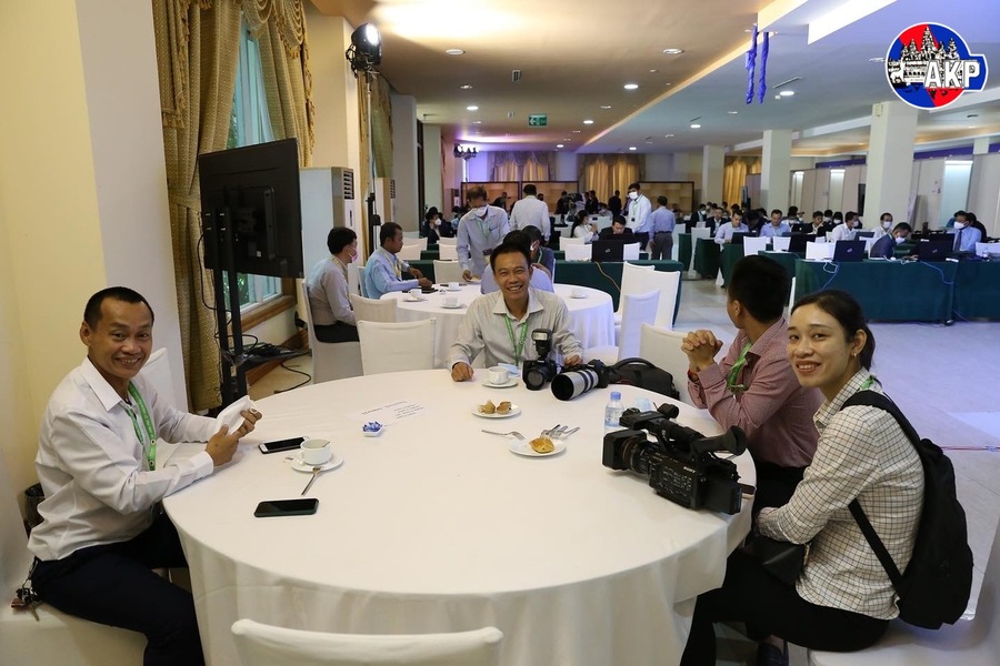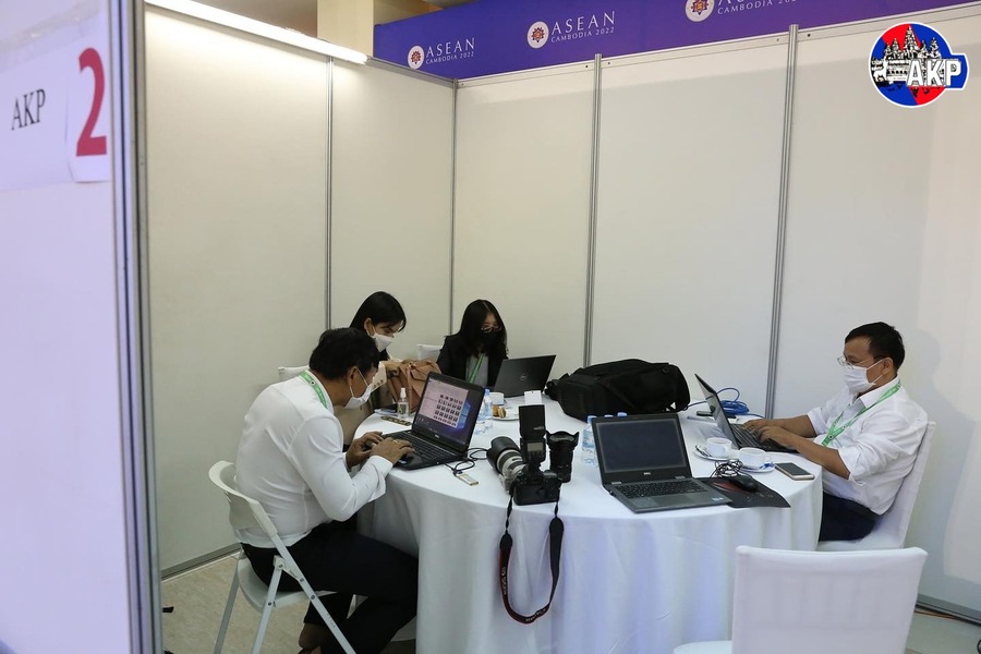 أنشطة الصحفيين المحليين والدوليين بالمركز الإعلامي أثناء الاجتماع الخامس والخمسين لوزراء خارجية الآسيان والاجتماعات ذات الصلة التي أقيمت في متن فندق سوخا بنوم بنه هذا الصباح اليوم ٠١ آب/أغسطس ٢٠٢٢.