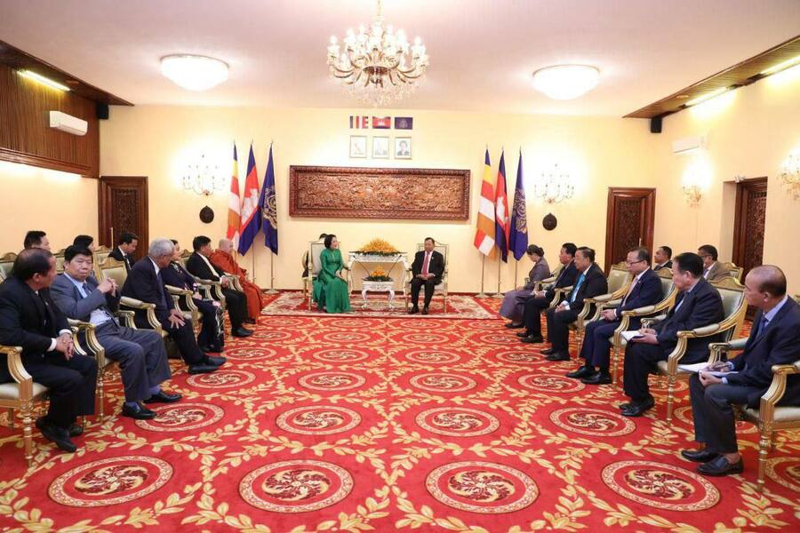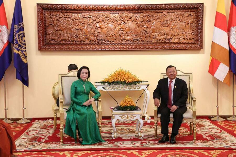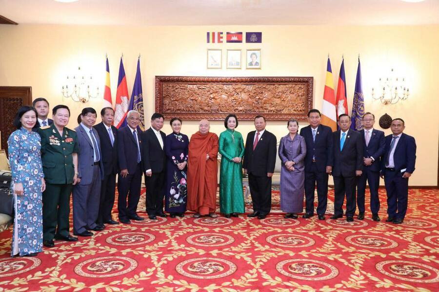 استقبل سامديتش فيبول سينا فياكدي ساي تشوم، رئيس مجلس الشيوخ في مملكة كمبوديا، سعادة نغويان ثي ثانه، رئيسة جمعية الصداقة الفيتنامية-الكمبودية. وجرى خلال استقبال مباحثات العمل. وذلك في مقر مجلس الشيوخ بعاصمة بنوم بنه، بعد الظهر اليوم ٠٢ آب/أغسطس ٢٠٢٢.