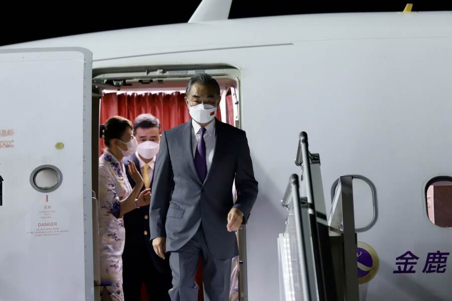 وصل معالي وانغ يي، عضو مجلس الدولة ووزير خارجية الصين والوفد إلى مطار بنوم بنه الدولي، ليلة اليوم ٠٢ آب/أغسطس ٢٠٢٢، لحضور الاجتماع الخامس والخمسين لوزراء خارجية الآسيان والاجتماعات ذات الصلة التي تعقد في عاصمة بنوم بنه.