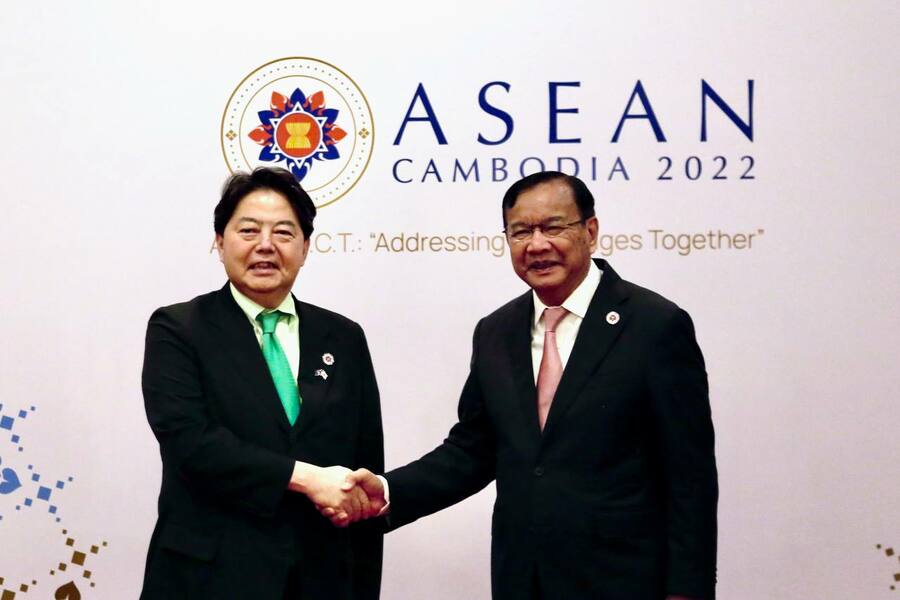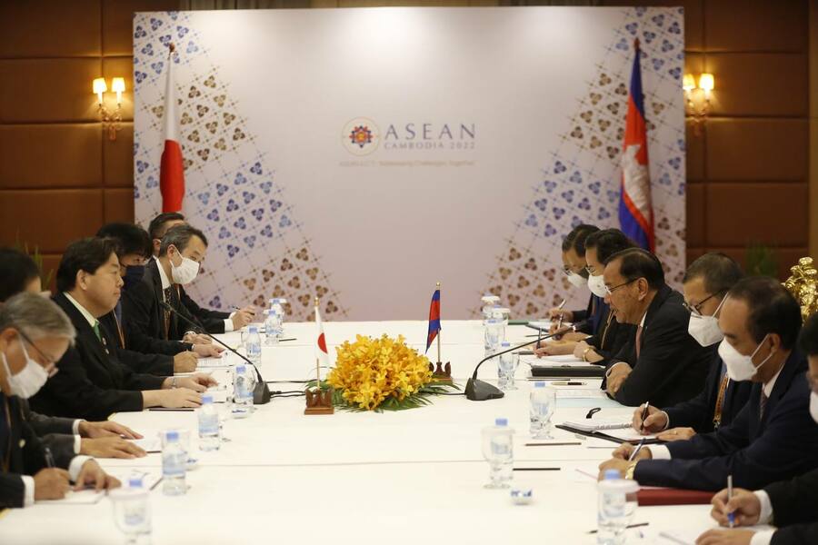 استقبل معالي براك سوخون، نائب رئيس الوزراء، وزير الخارجية والتعاون الدولي لمملكة كمبوديا معالي يوشيماسا هاياشي، وزير خارجية بابان، أثناء إقامته في كمبوديا لحضور الاجتماع الخامس والخمسين لوزراء خارجية رابطة أمم جنوب شرق آسيا والاجتماعات ذات الصلة في عاصمة بنوم بنه.