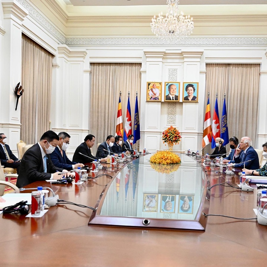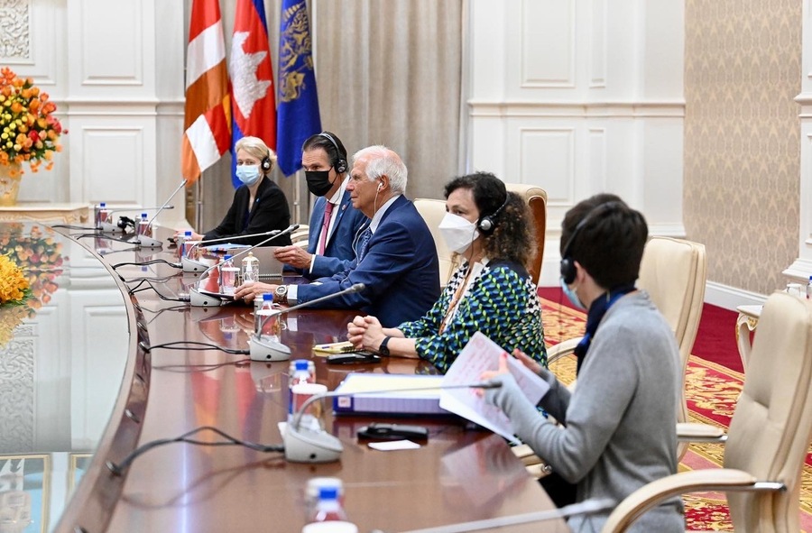 استقبل سامديتش أكا موها سينا بادي تيتشو هون سين، رئيس وزراء مملكة كمبوديا معالي جوزيب بوريل فونتيليس، الممثل السامي للاتحاد الأوروبي للشؤون الخارجية والسياسة الأمنية أثناء إقامته في كمبوديا لحضور الاجتماع الخامس والخمسين لوزراء خارجية رابطة أمم جنوب شرق آسيا والاجتماعات ذات الصلة في عاصمة بنوم بنه.