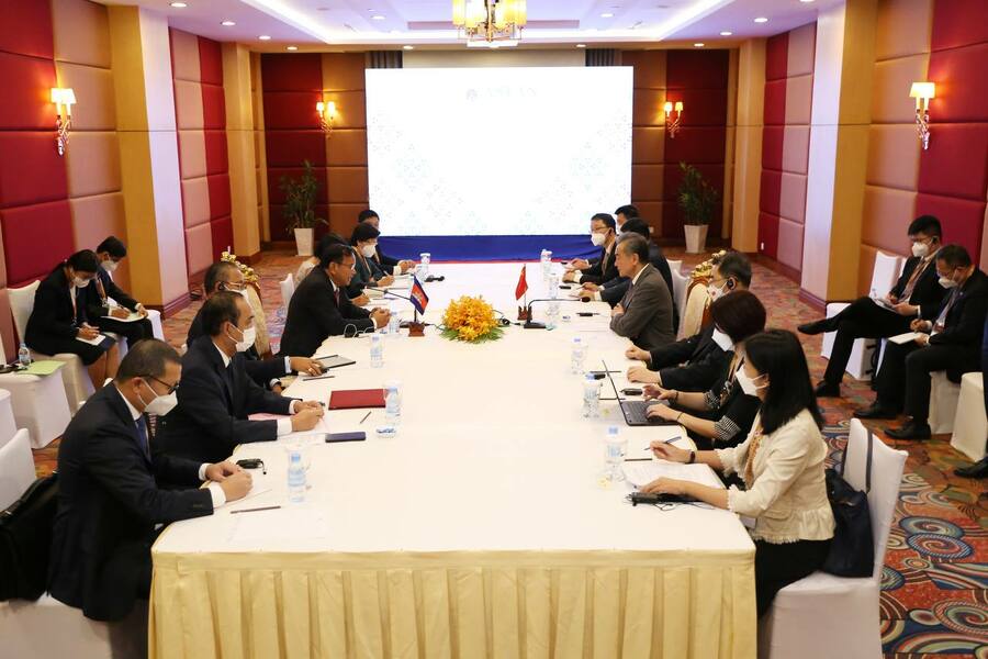 عقد معالي براك سوخون، نائب رئيس الوزراء الكمبودي ووزير الخارجية والتعاون الدولي اجتماعا ثنائيا مع مستشار الدولة ووزير الخارجية الصيني الزائر وانغ يي في ٠٣ آب/أغسطس، على هامش الاجتماع الخامس والخمسين لوزراء خارجية رابطة أمم جنوب شرق آسيا.
