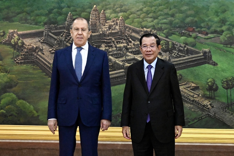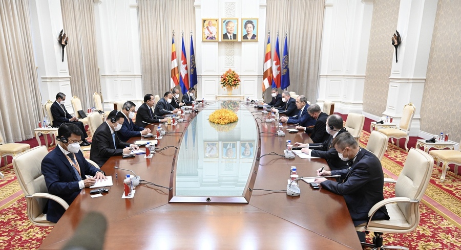 استقبل سامديتش أكا موها سينا بادي تيتشو هون سين، رئيس وزراء مملكة كمبوديا معالي سيرغي لافروف، وزير خارجية اتحاد روسيا أثناء إقامته في كمبوديا لحضور الاجتماع الخامس والخمسين لوزراء خارجية رابطة أمم جنوب شرق آسيا والاجتماعات ذات الصلة في عاصمة بنوم بنه.