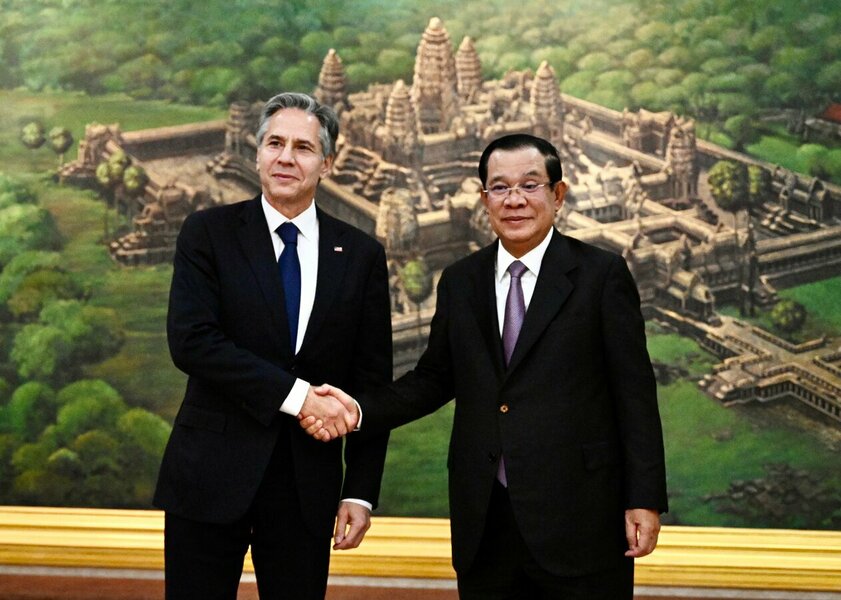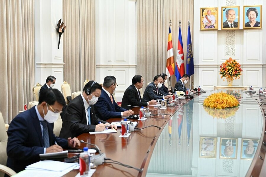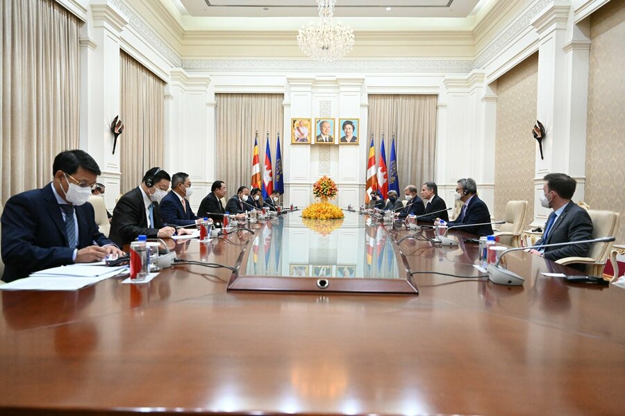 استقبل سامديتش أكا موها سينا بادي تيتشو هون سين، رئيس وزراء مملكة كمبوديا معالي أنتوني بلينكن، وزير الخارجية الأمريكي أثناء إقامته في كمبوديا لحضور الاجتماع الخامس والخمسين لوزراء خارجية رابطة أمم جنوب شرق آسيا والاجتماعات ذات الصلة في عاصمة بنوم بنه.