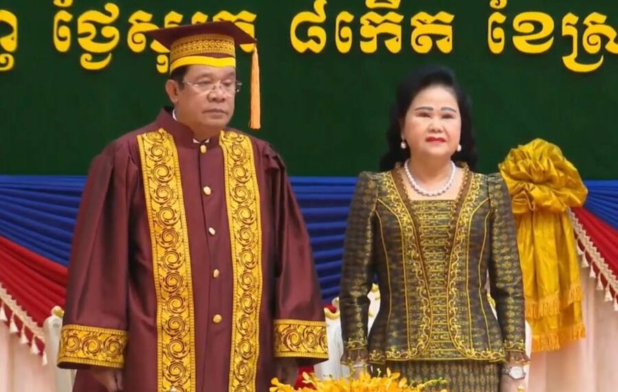 حصل سامديتش أكا موها سينا بادي تيتشو هون سين، رئيس وزراء مملكة كمبوديا على درجة الدكتوراه الفخرية الأخرى في التنمية من جامعة بنوم بنه الملكية.