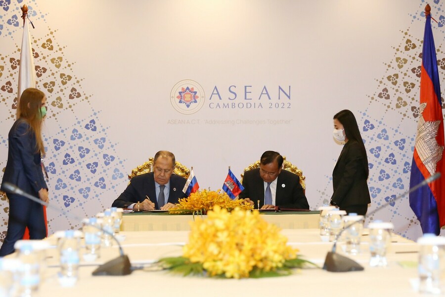 وقع معالي براك سوخون، نائب رئيس الوزراء الكمبودي ووزير الخارجية والتعاون الدولي ومعالي سيرغي لافروف، ووزير الخارجية الروسي الزائر، خطة التشاورات ٢٠٢٢-٢٠٢٤بين وزارة الخارجية والتعاون الدولي في كمبوديا ووزارة خارجية الاتحاد الروسي، بعد الظهر اليوم ٠٥ آب/أغسطس ٢٠٢٢، بعاصمة بنوم بنه.