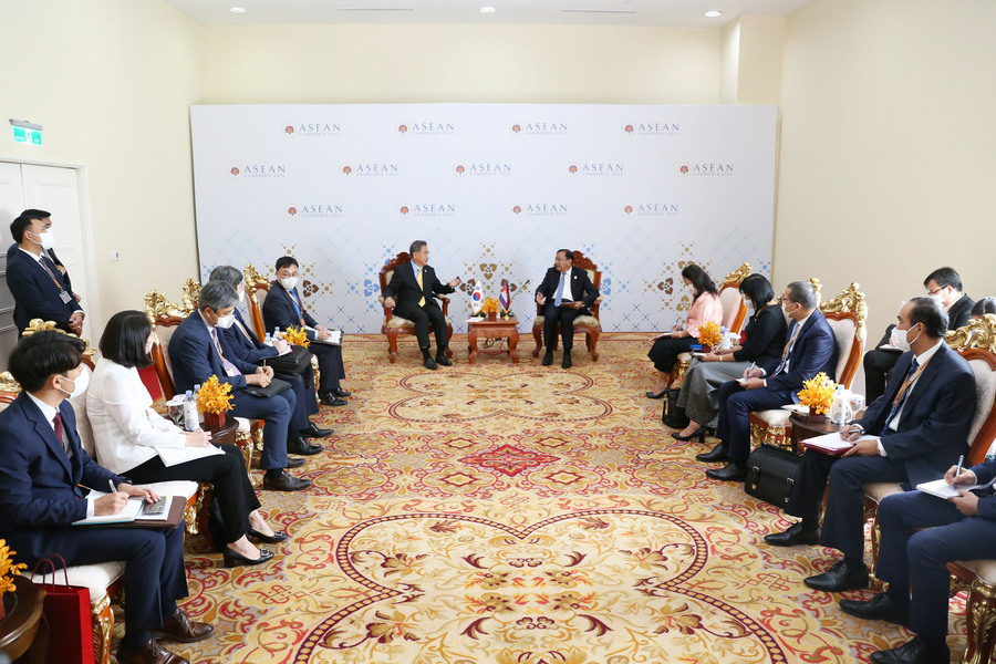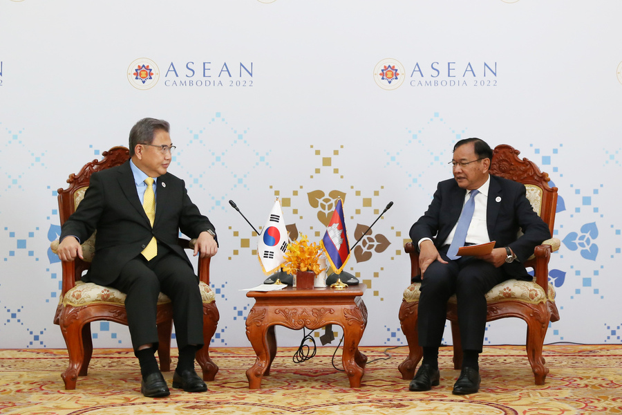 استقبل معالي براك سوخون، نائب رئيس الوزراء، وزير الخارجية والتعاون الدولي لمملكة كمبوديا معالي بارك جين، وزير خارجية جمهورية كوريا، أثناء إقامته في كمبوديا لحضور الاجتماع الخامس والخمسين لوزراء خارجية رابطة أمم جنوب شرق آسيا والاجتماعات ذات الصلة.