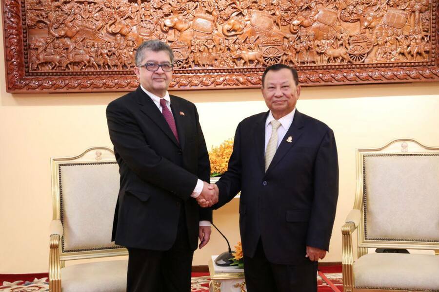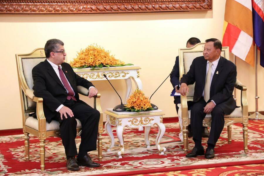 استقبل سامديتش فيبول سينا فياكدي ساي تشوم، رئيس مجلس الشيوخ في مملكة كمبوديا، سعادة فهرام كازويان، سفير جمهورية أرمينيا في مقر مجلس الشيوخ بعاصمة بنوم بنه، هذا صباح اليوم ١٩ آب/أغسطس ٢٠٢٢.