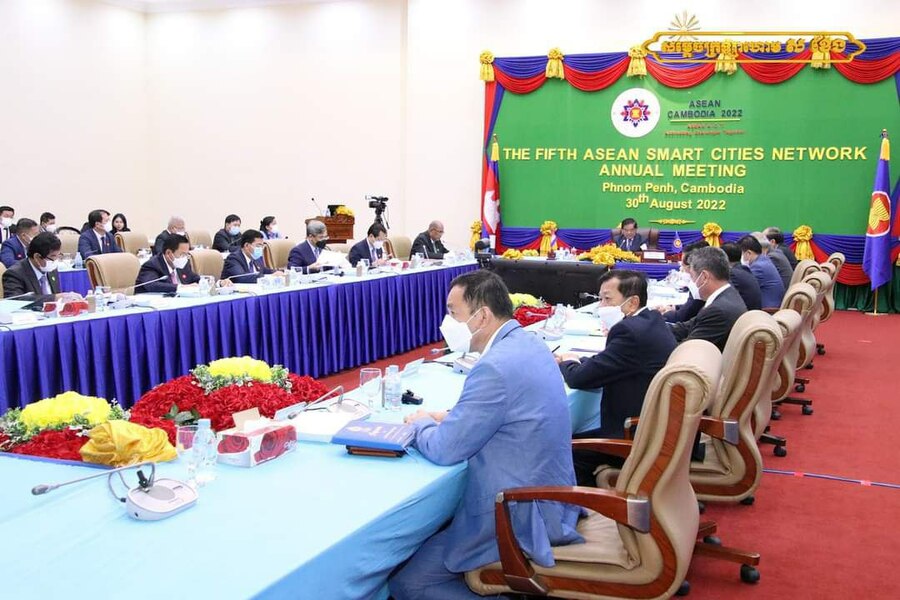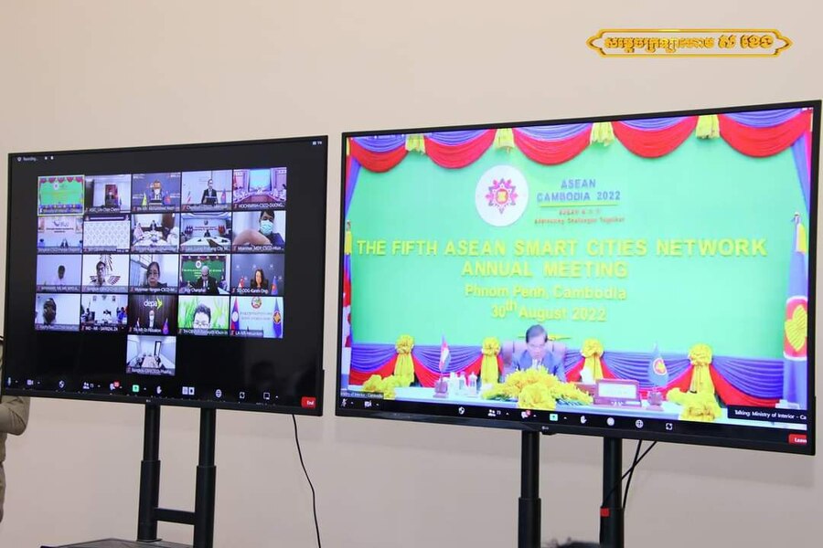 يحضر سامديتش كرالا هوم سار خينغ، نائب رئيس الوزراء وزير الداخلية الاجتماع السنوي الخامس لشبكة المدن الذكية في الآسيان عبر الاتصال المرئي في مقر وزارة هذا الصباح اليوم ٣٠ آب/أغسطس ٢٠٢٢.