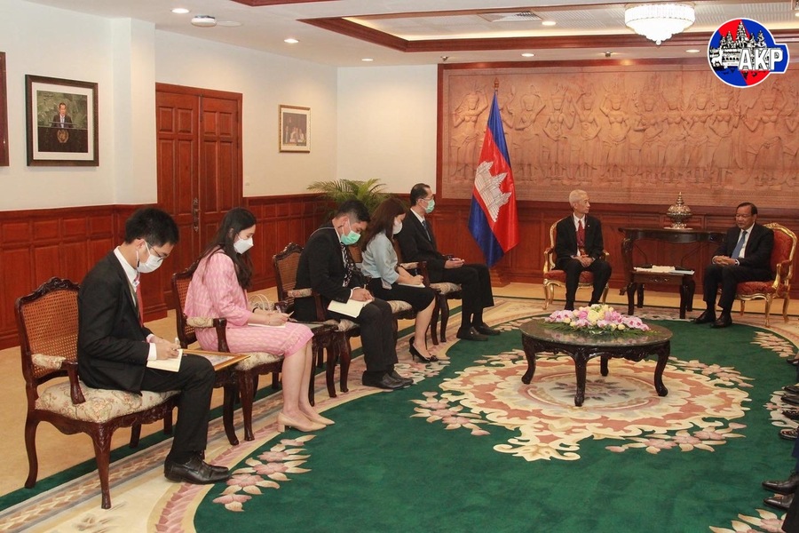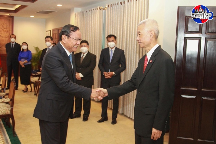 استقبل معالي براك سوخون، نائب رئيس الوزراء، وزير الخارجية والتعاون الدولي لمملكة كمبوديا في مقر وزارة الخارجية والتعاون الدولي، سعادة بانياراك بولثوب، السفير التايلندي لدى كمبوديا في زيارة وداعية لمناسبة انتهاء بعثة سعادته الدبلوماسية في كمبوديا ويبحثان معا في آخر المستجدات على الساحة المحلية. وذلك في عاصمة بنوم بنه هذا صباح اليوم ٦ أيلول/سبتمبر ٢٠٢٢.