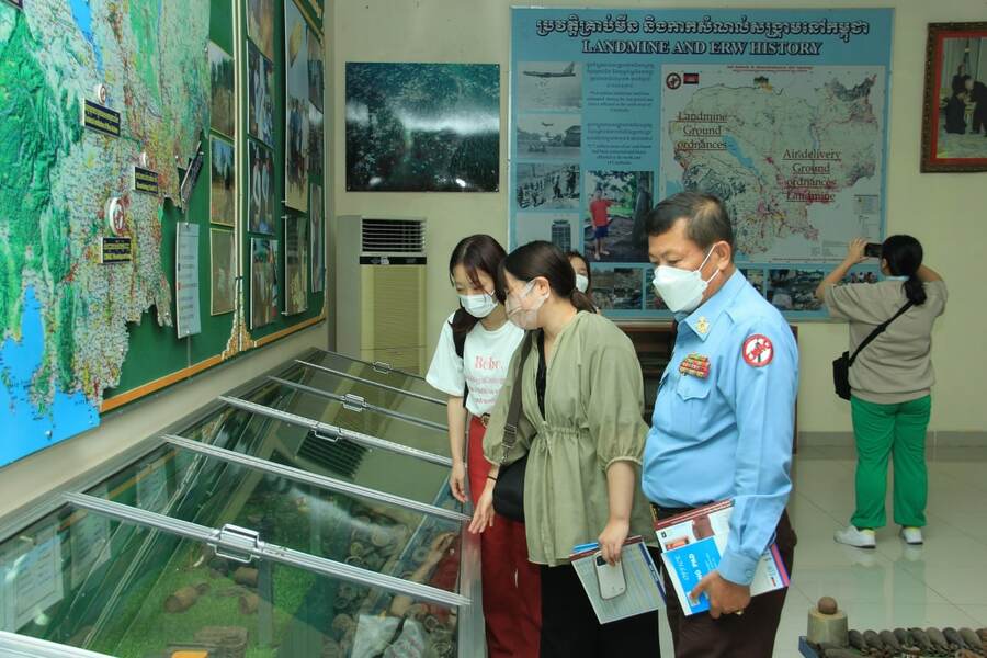 تم الإعراب عن التقدير خلال زيارة قامت بها مجموعة من الطلاب من جامعة تشو باليابان بقيادة الدكتور هاناتاني أتسوشي إلى مقر المركز الكمبودي للإجراءات المتعلقة بالألغام في بنوم بنه في ٦ أيلول/سبتمبر ٢٠٢٢.