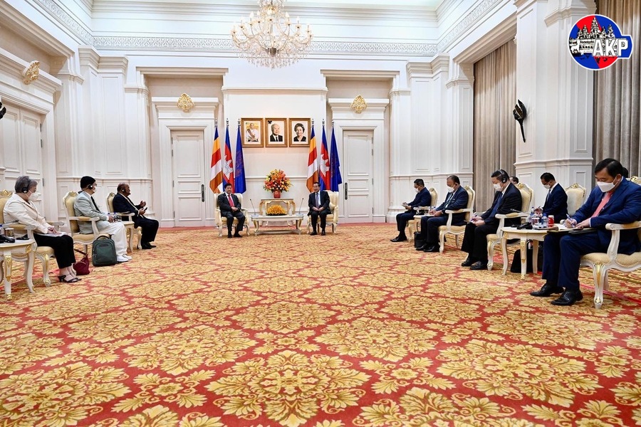 استقبل سامديتش أكا موها سينا بادي تيتشو هون سين، رئيس وزراء مملكة كمبوديا سعادة تان سري مايكل يوه، عميد معهد كي.أس.آي الاستراتيجي لآسيا والمحيط الهادئ. ويعقدان مباحثات رسمية. وذلك في قصر السلام بعاصمة بنوم بنه هذا الصباح اليوم ٨ أيلول/سبتمبر ٢٠٢٢.