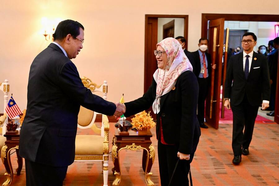تم التأكيد على التوصية، خلال أن يستقبل دولة رئيس الوزراء هون سين سعادة يانغ موليا د. الحاجة ماي فاعزة بنت الحاج أحمد عريفين، قبل انطلاق القمة الرابعة والخمسين لوزراء اقتصاد الآسيان والتي أقيمت في فندق سوخا بمدينة سيام ريب هذا صباح اليوم ١٤ أيلول/سبتمبر ٢٠٢٢، هذا وفقا لسعادة أينغ سوفاليث، مساعد رئيس الوزراء.