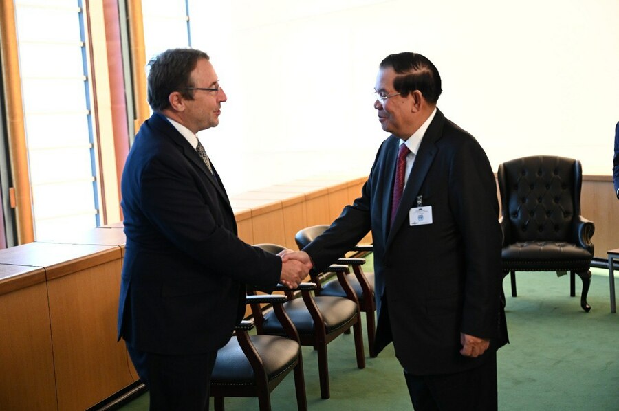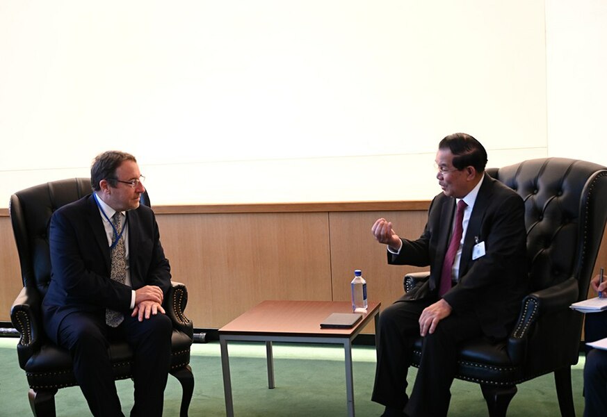 وفقًا لسعادة الوزير كاو كيم حورن، الملحق برئيس الوزراء، خلال اجتماعهم في مقر الأمم المتحدة في نيويورك يوم ٢٢ أيلول/سبتمبر، على هامش الدورة السابعة والسبعين للمناقشة العامة للجمعية العامة للأمم المتحدة.