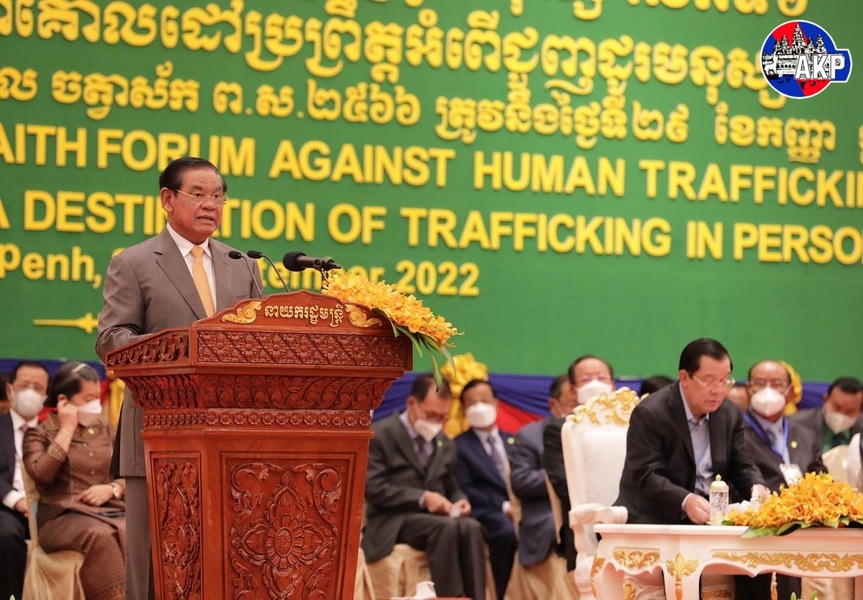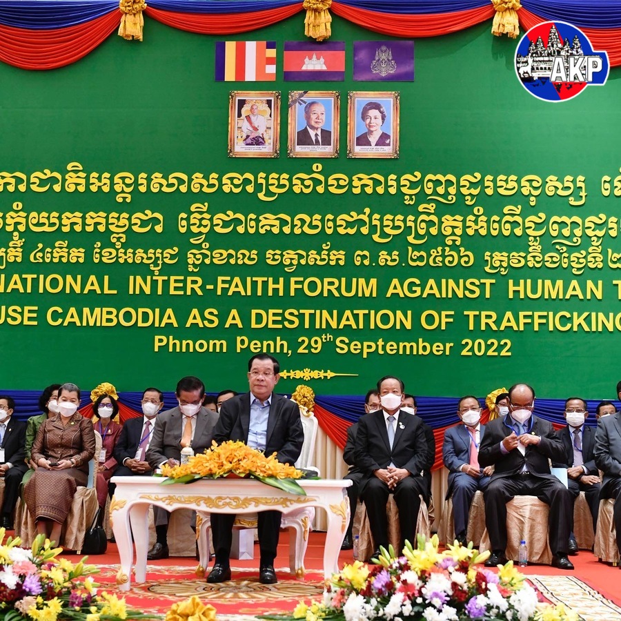 يرأس دولة رئيس الوزراء سامديتش أكا موها سينا بادي تيتشو هون سين المنتدى الوطني السادس المشترك بين الأديان لمكافحة الاتجار بالبشر تحت شعار «لا تستخدم كمبوديا كوجهة للاتجار بالبشر»، والذي أقيم في مركز جروي تسونغفا للمعارض بعاصمة بنوم بنه، صباح اليوم ٢٩ أيلول/سبتمبر ٢٠٢٢.