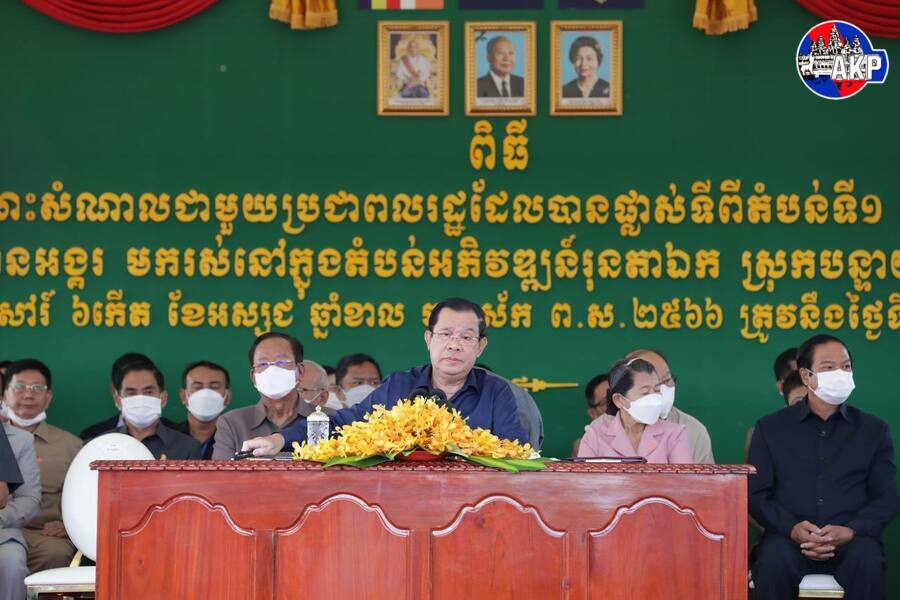 وقال أثناء لقائه مع ما يقارب ٢،٨٠٠ أسرة التي تطوعت للخروج من المنطقتين الأولى والثانية من حديقة أنغكور الأثرية إلى منطقة تطوير رنتاعيك في منطقة بانتياي سري، محافظة سيام ريب هذا الصباح أن "كمبوديا لا تؤيد الانفصال. نحن نعارض استخدام القوات أو التهديد باستخدام القوات".