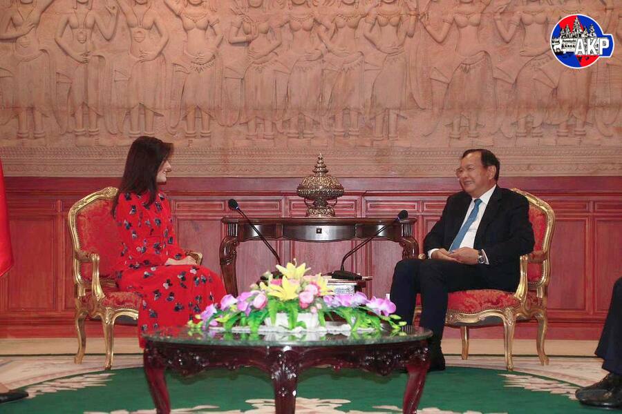 يستقبل معالي براك سوخون، نائب رئيس مجلس الوزراء ووزير الخارجية والتعاون الدولي، سعادة عايدة أونلو، سفيرة جمهورية تركيا المنتهية ولايتها لدى مملكة كمبودي، في زيارة مجاملة ووداع صباح يوم ٢٧ يونيو ٢٠٢٢م وذلك في مقر وزارة الخارجية، بنوم بنه.