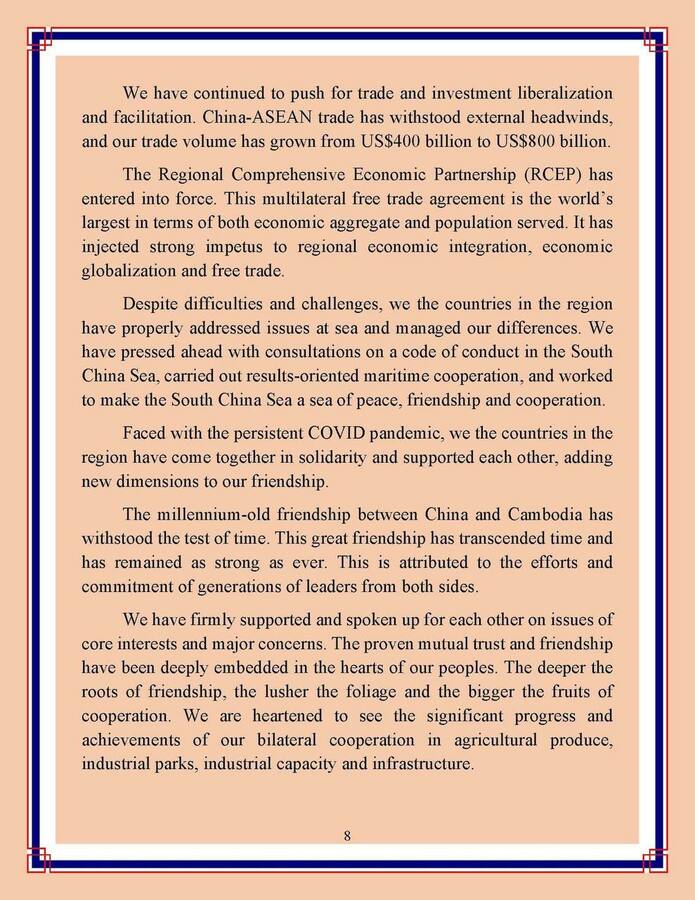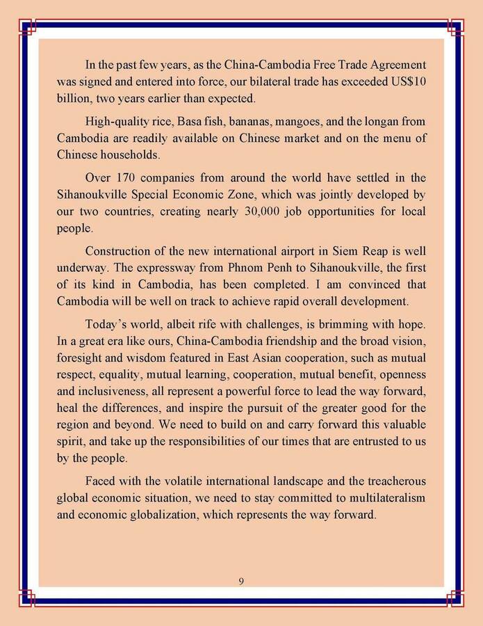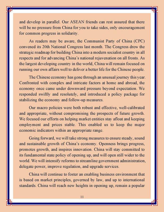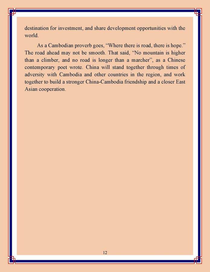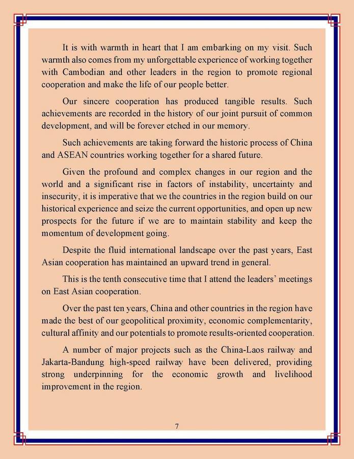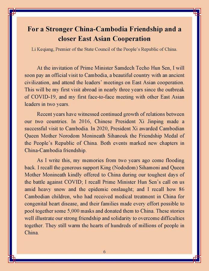 أدلى معالي لي كه تشيانغ، رئيس مجلس الدولة لجمهورية الصين الشعبية، ببيان بشأن العلاقة والتعاون بين كمبوديا والصين، قبل زيارته الرسمية لكمبوديا ومشاركته في القمتين الأربعين والحادية والأربعين لرابطة أمم جنوب شرق آسيا والقمم ذات الصلة التي تستضيفها مملكة كمبوديا في بنوم بنه هذا الأسبوع.